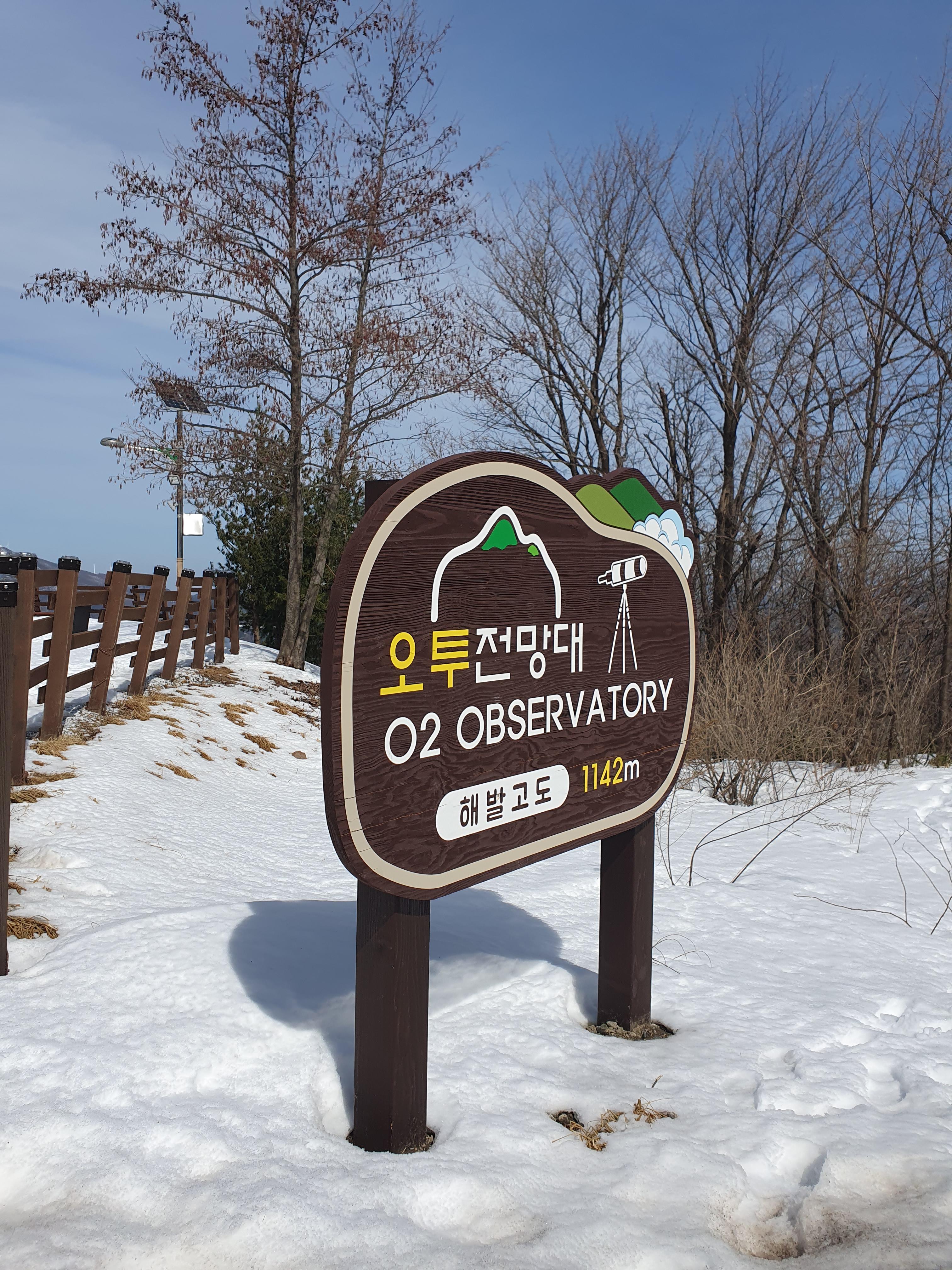 첫날 내려오면서 지나친 전망대인데 위치가 꽤 괜찮아서 잠깐 구경을 했다. 오투리조트라는 꽤 큰 리조트가 있는 모양인데 그 리조트의 이름을 따서 오투전망대라고 부르는 것 같다. 산소도시 태백 어쩌고 하더니 ㅋㅋ
